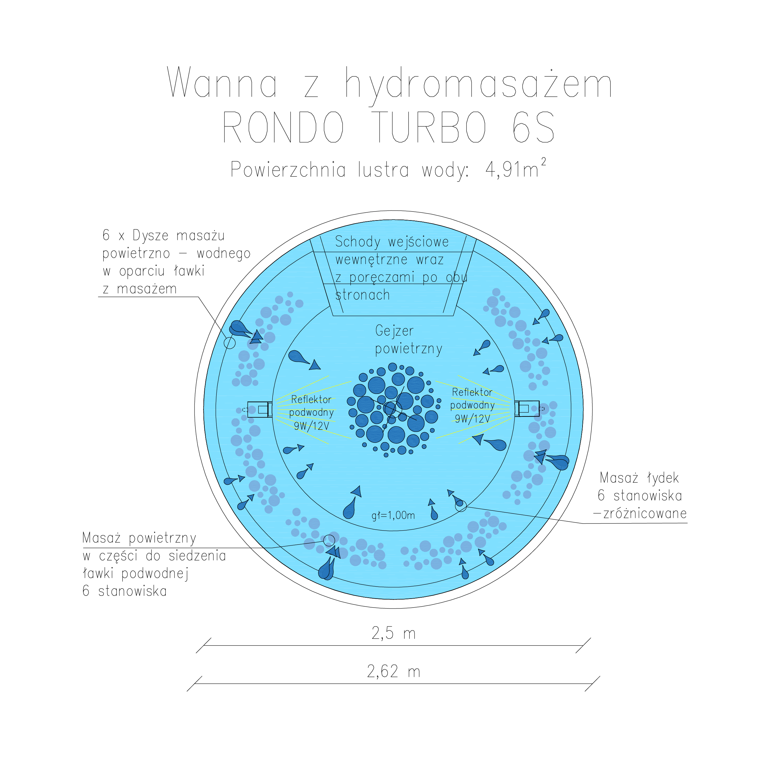 Atrakcje i wyposażenie niecek basenowych ze stali nierdzewnej
