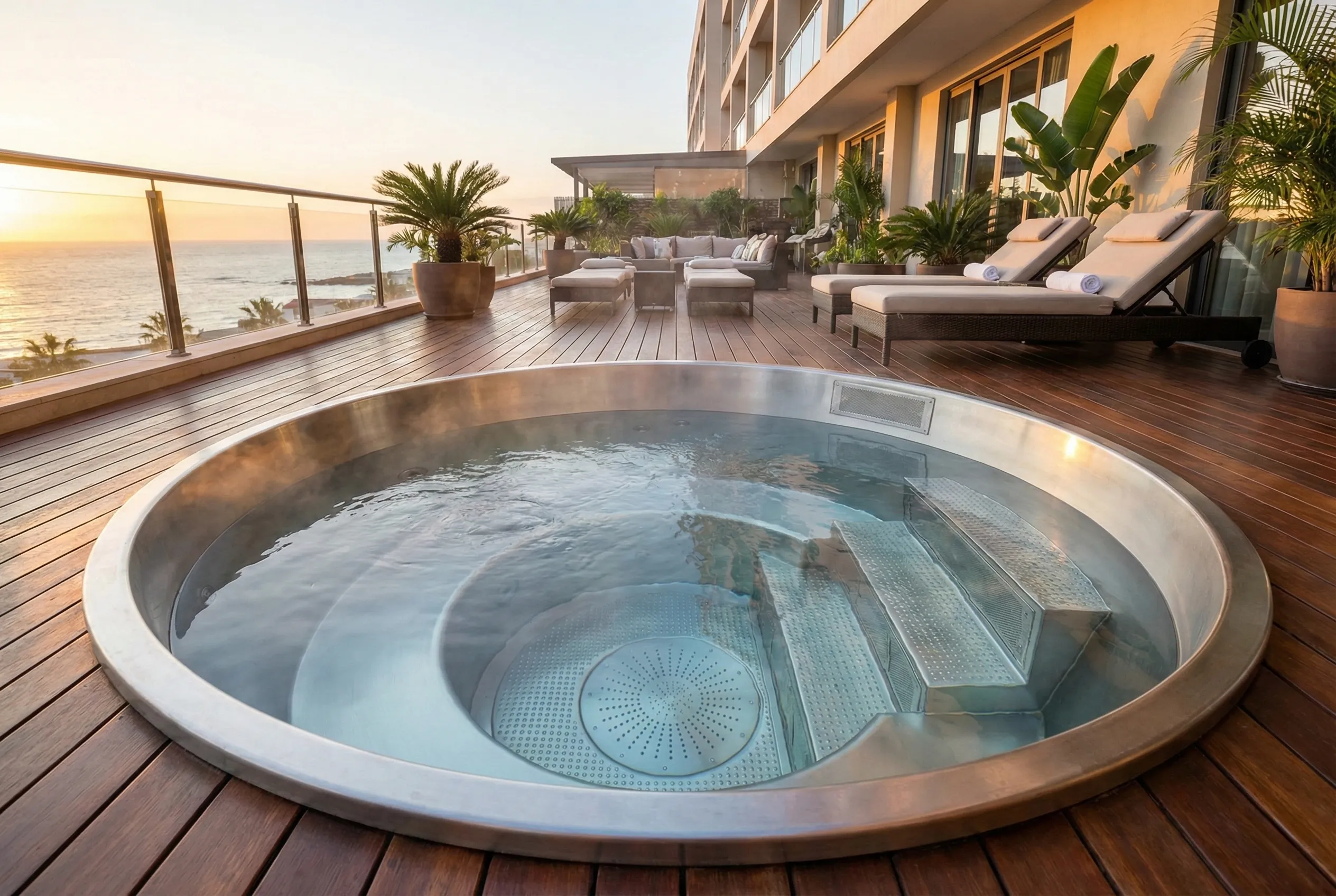 Ze względu na znacząco niższą wagę niecki ze stali nierdzewnej w porównaniu do konstrukcji betonowych i kafelkowanych, wanny Berndorf mogą być montowane w dowolnym miejscu, np. na dachu budynku.